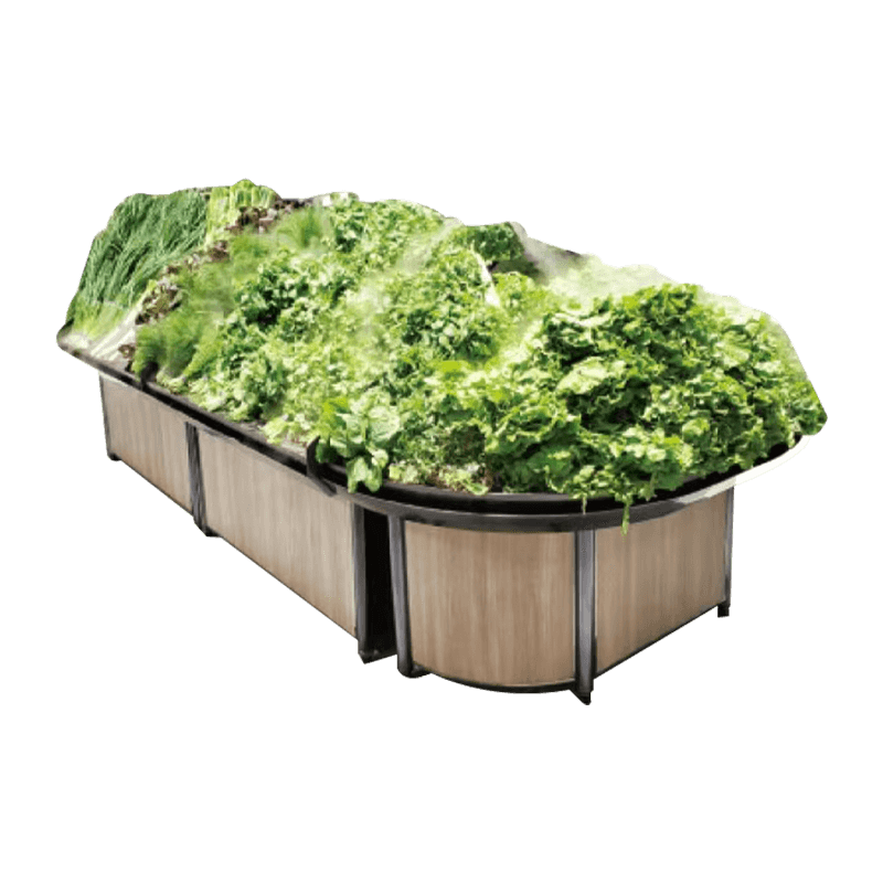Dit goed zichtbare groente- en fruitrek is ontworpen met de nadruk op displayverbetering, met een zeer helder verlichtingssysteem waardoor de producten er levendiger en visueel aantrekkelijker uitzien. De zachte, gelijkmatig verdeelde verlichting verbetert niet alleen de algehele presentatie, maar helpt klanten ook de meest verse groenten en fruit gemakkelijk te identificeren en te selecteren, waardoor de koopintentie toeneemt.